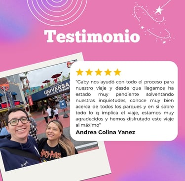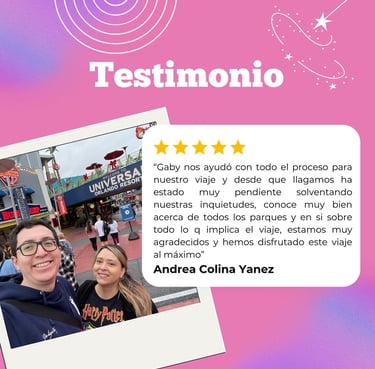 ¡Para nada! Mis servicios de planificación, asesoría y reserva no tienen ningún costo adicional para ti. Mi comisión la cubren directamente los destinos y proveedores (como Disney o Universal), así que tú pagas exactamente lo mismo que si lo hicieras por tu cuenta, pero con toda mi ayuda experta.