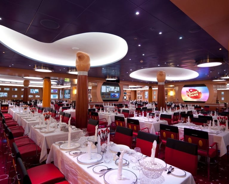 Aquí no es solo “todo incluido”, es una experiencia gastronómica. Con su sistema de rotational dining, cada noche cenas en un restaurante temático distinto acompañado por el mismo equipo de servicio. Desde cenas elegantes hasta experiencias inmersivas con personajes y shows, la comida se convierte en parte del entretenimiento.