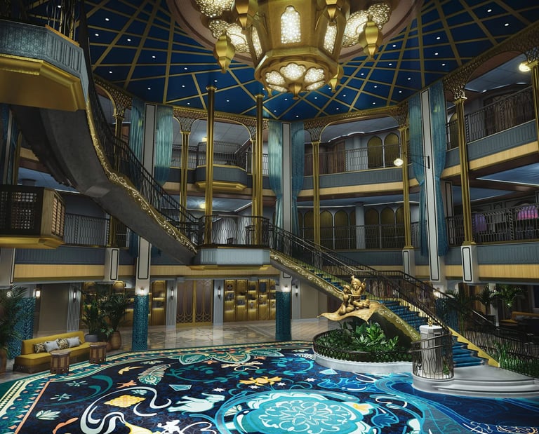Dato destacado: El show de Aladdin estilo Broadway es uno de los más impresionantes de toda la flota.