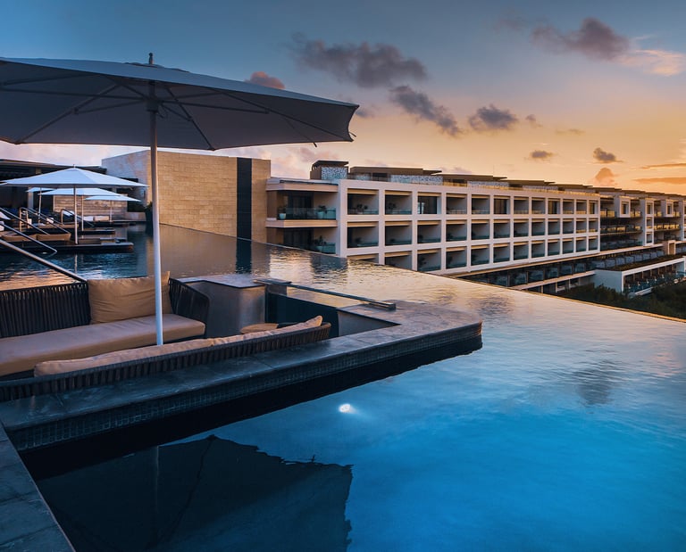 Un resort solo para adultos que redefine el lujo con un enfoque artístico y sofisticado. Atelier Playa Mujeres destaca por su diseño elegante, gastronomía gourmet de alto nivel y un ambiente relajado perfecto para parejas o viajeros que buscan desconectar. Aquí toda gira en torno al descanso, el buen gusto y el servicio personalizado frente a una de las playas más exclusivas del Caribe mexicano.